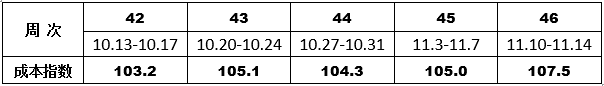 2025年第46周(11.10-11.14)兰格生铁成本指数为107.5,较上周升2.4%。