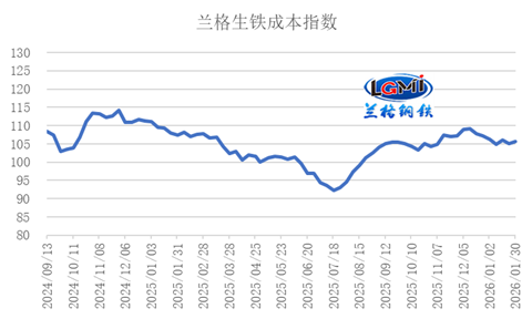 2026年第5周(1.26-1.30)兰格生铁成本指数为105.6,较上周升0.4%。