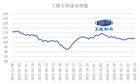 2026年第17周(4.20-4.24)兰格生铁成本指数为103.3,较上周降1.0%。